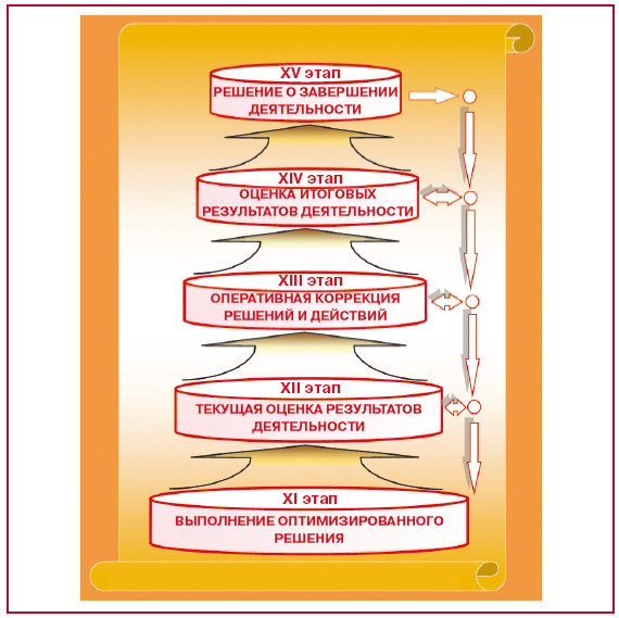 XIII этап. На основе текущей оценки результатов управленческой деятельности руководители осуществляют оперативную коррекцию решений и действий. Любой этап управленческой деятельности всегда предполагает значительный элемент творчества. Однако в большей степени творческого подхода требует именно сам процесс выполнения стратегического решения. В этом цикле наибольшие способности к творчеству руководитель может проявить на этапе оперативной коррекции решений и действий.
