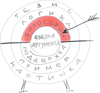 Давайте вспомним наш пример с бизнес-проектом. Нас убеждают принять некий бизнес-проект, потому что он обеспечит приток новых клиентов, что в итоге приведет к увеличению прибыли компании. Какова философия данного аргумента? Исходя из тех поддержек и примеров, которые мы привели в самом начале, ценностью данного аргумента являются деньги. Я могу не трогать аргумент, поддержку и пример, а могу заменить философию данного аргумента на более сильную. Например: «О каких новых клиентах вы говорите, когда мы со старыми справится не можем? У нас людей не хватает, чтобы обеспечить грамотное обслуживание. Лучше эти деньги на расширение и обучение штата направить!» Нам говорили про деньги, а мы ведем разговор про сервис.