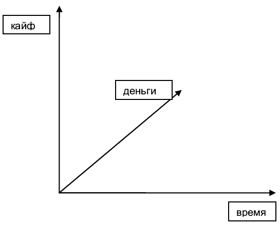 Справедливости ради заметим, что с осью «кайфа» воюют не только деньги, но и время (единственный невосполнимый ресурс). Еще А. В.Суворов, великий наш полководец, говорил: «Деньги дороги, люди дороги, но время дороже».