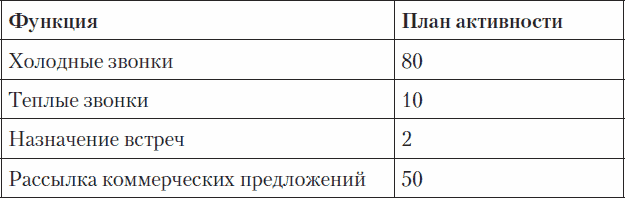 План продаж – это объем продаж, выраженный в денежных единицах. План активности – это минимальное количество действий (звонков, встреч, КП), которое сотрудник должен сделать в день/неделю/месяц (рис. 6.1).