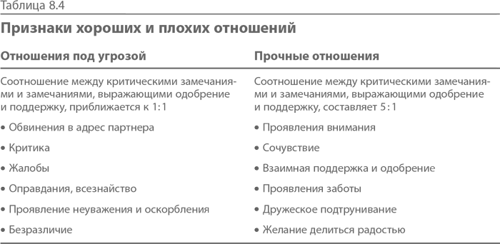В таблице 8.4 представлены симптомы, позволяющие оценить отношения супругов. А как обстоит дело у вас в семье?