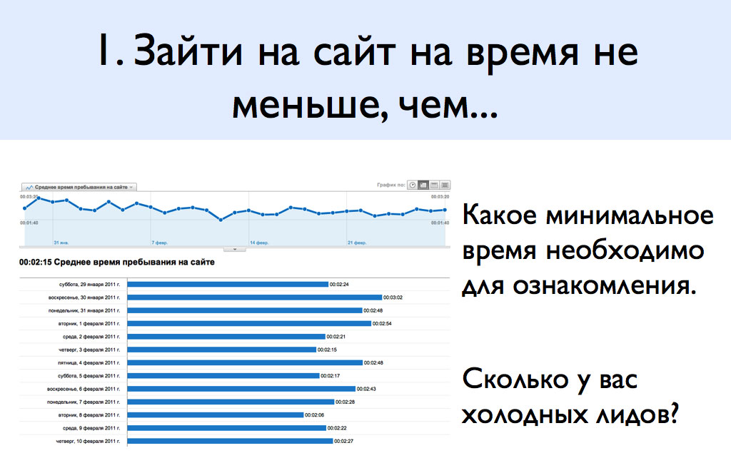 В процессе аналитики вы сможете сравнить время, которое проводят у вас на сайте холодные, теплые и горячие лиды, и понять, сколько у вас на сайте лидов и какого они уровня.