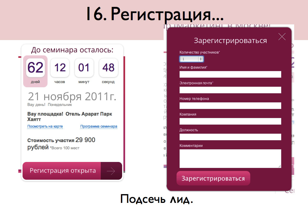 Важно. Если человек начал заполнять анкету, но не заполнил ее – цель не достигнута! – вам нужно получить заполненную заявку, анкету и т. п.