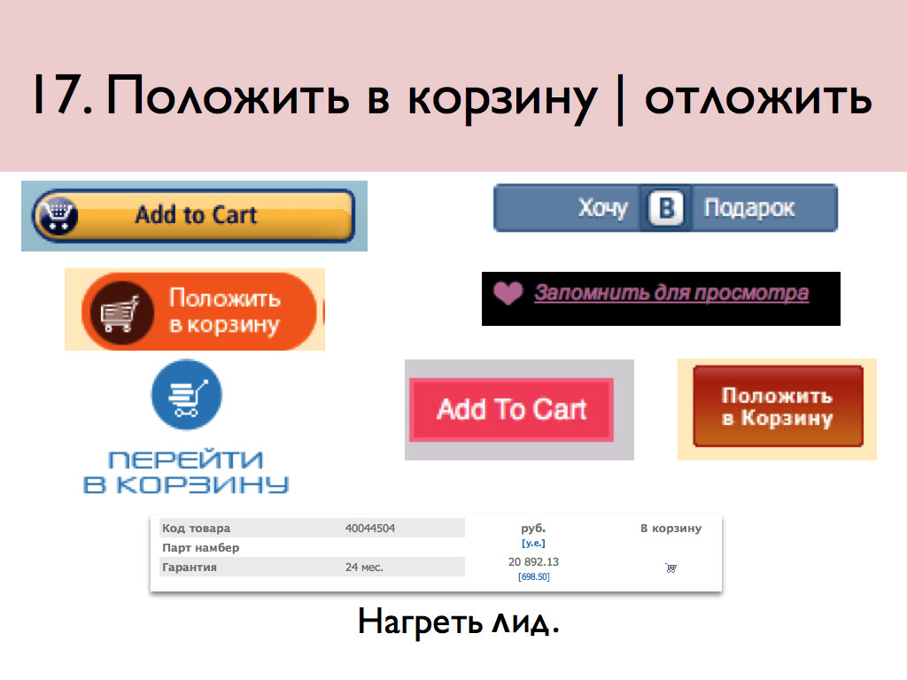 Кто запрещает «положить в корзину» машину или квартиру? Это целевое действие покажет спрос на продукцию или услуги.