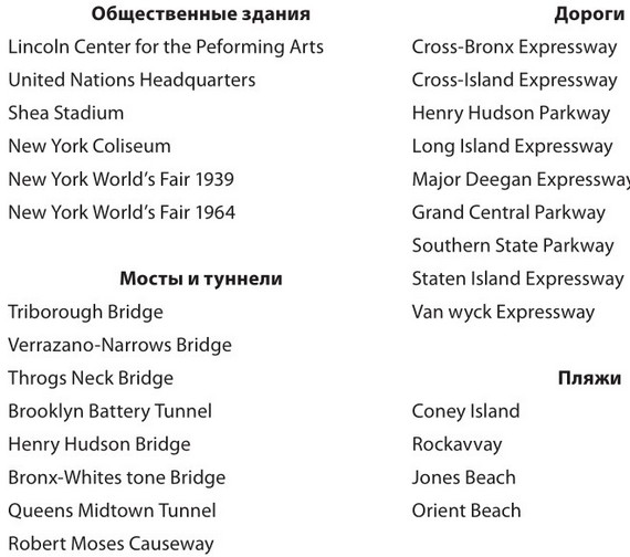 Табл. 5.1. Некоторые общественные сооружения, возведенные Робертом Мозесом