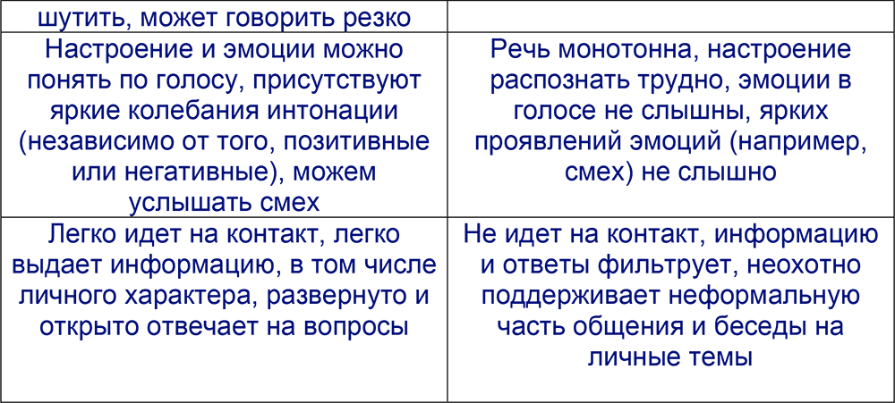 Конечно, при встрече определить тип собеседника гораздо легче, чем по телефону, но и для телефонного разговора сигналов для определения достаточно.