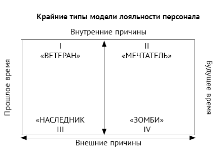 В лояльности «наследника» есть что-то инфантильное, несамостоятельное. Он не сам выбирает свой путь, его обязывает влияние либо прошлого, либо других людей. Он гораздо легче, чем «ветеран», поддается на убеждения и внушения, поскольку не имеет внутреннего локуса контроля.
