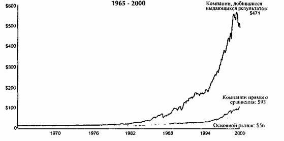 f) График 1.В показывает данные по рынку как по компаниям, которые мы использовали для сравнения, так и по компаниям, которые добились выдающихся результатов, при условии, если бы вы инвестировали $1 с 31 декабря 1964 года до 2000 года.