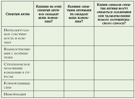 Подумайте, какие скрытые активы есть у вашей компании: уникальный доступ к потребителю, технологическое ноу-хау, парк установленного оборудования, доступ к рынку, сеть связей, информационная база, а также лояльное сообщество пользователей.