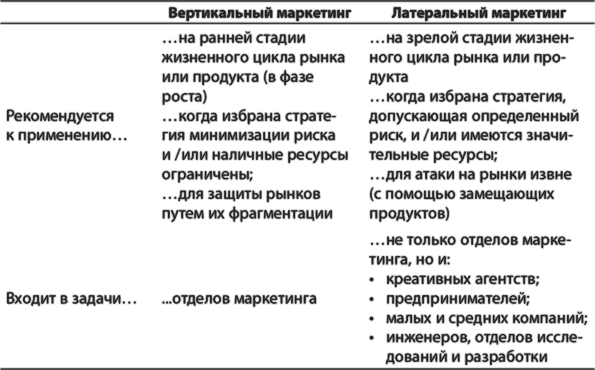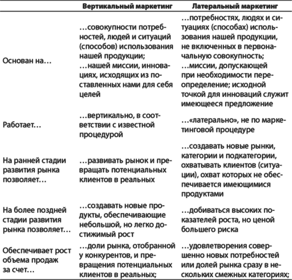 Таблица 5.2. Сопоставление вертикального и латерального маркетинга