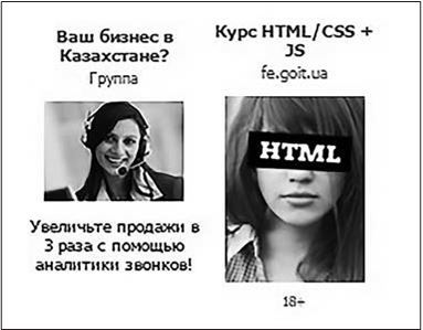 12. «Креативные» и «кликовымогательские» картинки, привлекающие внимание (рис. 3.12). Их стоит использовать в последнюю очередь. Потому что именно они опаснее всего. «Удачно» выбранное изображение может показывать отличные CTR, но при этом никак не конвертироваться в целевые действия. У меня такое было однажды на проекте, где мы продавали картины на холсте. Аудитория, собранная в сообществах по критерию знаков зодиака, отлично кликала по объявлениям типа «Водолей? Забери свой подарок», но на сайте показывала почти 100 % отказа.