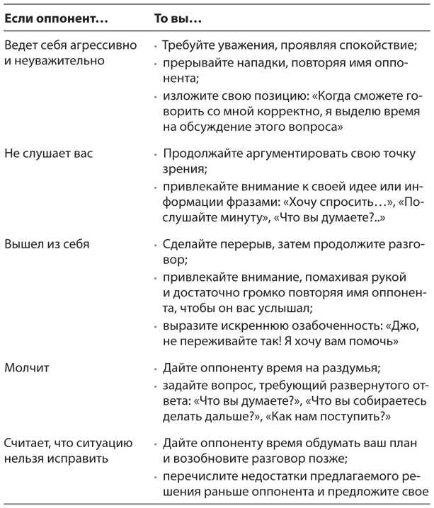 Управлять можно собственными реакциями, но никак не реакциями оппонента. Попробуйте методы устранения непродуктивного поведения из таблицы 3.