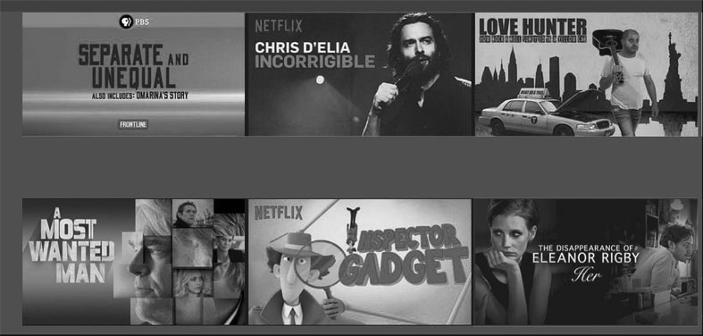 Рисунки 61.1, 61.2, 61.3 и 61.4 демонстрируют, какой размер должны иметь значки на экране, чтобы пользователь смог без проблем выбрать фильм.