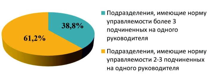 Таким образом, в целом по предприятию большинство подразделений (61.2 %) имеют норму управляемости в 3 и менее подчиненных на одного руководителя.