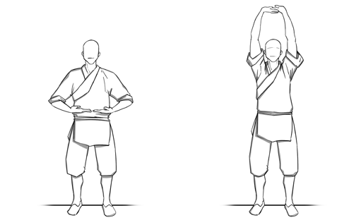 • Со следующим вдохом опустите руки в обратном порядке и займите исходную позицию.