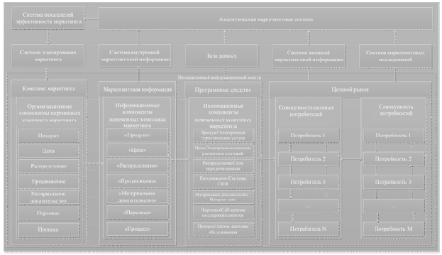 Несмотря на то, что существует множество моделей МИС, предложенных разными авторами и рассмотренных в главе 2 монографии, они не в полной мере отвечают современной специфике деятельности предприятий и уровню развития ИКТ, а также сформулированным выше методологическим принципам. Кроме того, многие авторы в своих работах подробно не рассматривают вопросы функционирования МИС и происходящие в них информационные процессы. Поэтому, представляется возможным предложить авторскую модель МИС, базирующуюся на переменных комплекса маркетинга и отвечающую указанным требованиям (рис. 4.3).