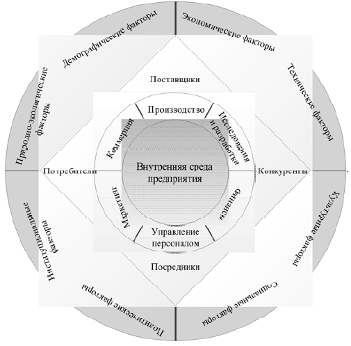 Внешнюю маркетинговую макросреду часто также называют средой косвенного воздействия. Она представляет собой совокупность крупных общественных и природных факторов, которые могут оказать воздействие на все субъекты внешней микросреды и внутренней среды маркетинга среды маркетинга. Это часть общей маркетинговой среды, которую предприятие не в состоянии контролировать и регулировать прямым образом, но необходимо учитывать ее влияние на маркетинговые процессы и рынок. Влияние внешней маркетинговой макросреды на предприятие особенно возрастает в условиях монополии или олигополии, где рыночная деятельность подвержена усиленному государственному регулированию.