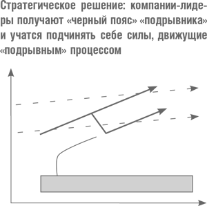 Когда вы видите летящий самолет, вам не приходит мысль о том, что это опровергает закон тяготения. Наоборот: инженеры создали аппарат, который преодолевает земное притяжение, но для этого им пришлось подчинить такие силы, как подъемная тяга, движение, сопротивление воздуха, – и только тогда полет стал возможен. Будущие пилоты учатся в летных училищах, – их учат управлять летательным аппаратом, находить правильный курс в воздухе. Для каждой ситуации существует определенная техника, которая меняется в зависимости от условий полета. Аналогичным образом компания может обучиться таким стратегиям, которые помогут ей держать под контролем «подрывные» процессы в отрасли. И точно так же, как руководители проектов, прошедшие обучение по принципам и реализации системы контроля качества «шесть сигм», получают «черный пояс», компании будут получать свои «черные пояса», держа оборону против новичков, ведущих атаку при помощи «подрывных» продуктов. В частности, компания может создать отдельную организацию, которая будет вести «подрывную» контратаку, а может мобилизовать внутренние ресурсы, позволяющие раз за разом добиваться прироста капитала – благодаря «подрывным» продуктам.