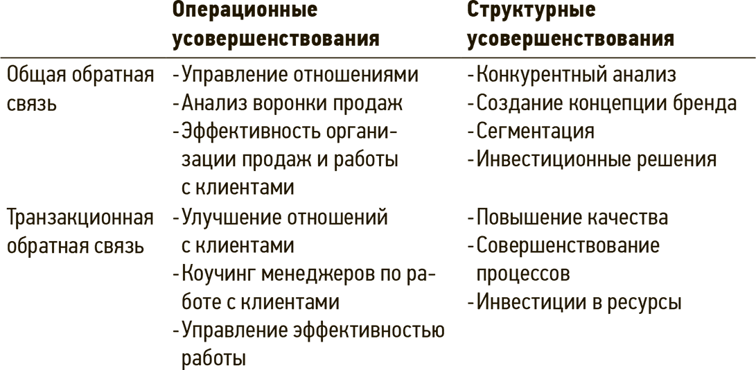 Таблица 4.1. Обратная связь способствует как операционным, так и структурным усовершенствованиям