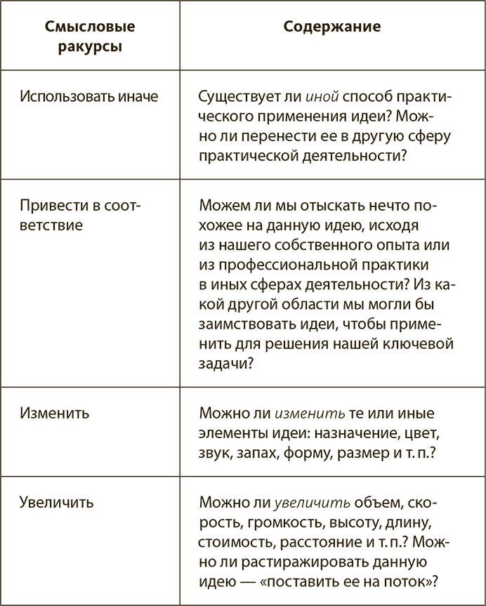 Пропустив идею через смысловые ракурсы, группа определяет для себя ключевые направления ее практической реализации.