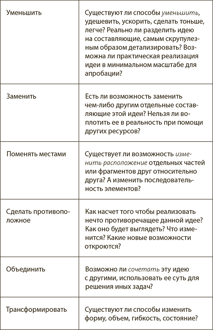 • оптимизация идей, появившихся на предыдущем этапе, связанном с процессом их свободной и спонтанной генерации;
