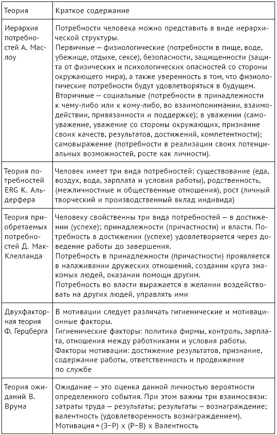 Наука и практика менеджмента серьезно и давно занимается проблемами мотивации производительного труда. Подтверждением этому являются признанные во всем мире теории трудовой мотивации, которые отражены в табл. 18.