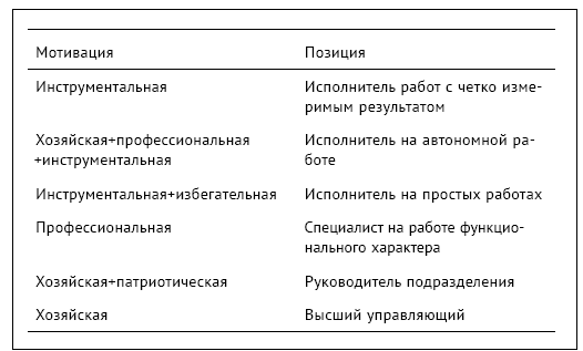Для российских организаций представляет интерес типологическая концепция В. И. Герчикова, которая связывает трудовое поведение работника и тип его мотивации.
