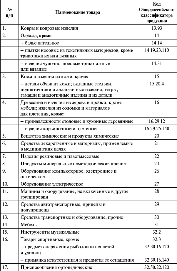 ? торговля на розничных рынках, ярмарках, в выставочных комплексах, а также на других территориях, отведенных для осуществления торговли, за исключением находящихся в этих местах торговли магазинов, павильонов, киосков, палаток, автолавок, автомагазинов, автофургонов, помещений контейнерного типа и других аналогично обустроенных и обеспечивающих показ и сохранность товара торговых мест (помещений и автотранспортных средств, в том числе прицепов и полуприцепов), открытых прилавков внутри крытых рыночных помещений при торговле непродовольственными товарами, кроме торговли непродовольственными товарами, которые определены в перечне, утвержденном Правительством Российской Федерации;