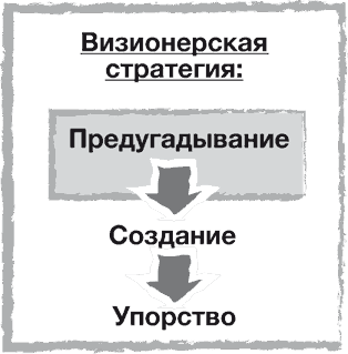 Руководители, выбирающие визионерскую стратегию, полагают, что они с большой вероятностью могут самостоятельно создавать или воссоздавать ранее существовавшую среду. Визионеры первыми выводят на рынок революционный новый продукт или бизнес-модель и за счет этого добиваются успеха. Когда другие считают условия неопределенными, визионеры четко видят возможность формирования нового сегмента рынка или значительного прорыва в существующем и всеми силами стремятся использовать эту возможность.