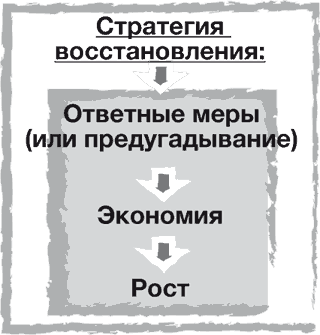 Стратегия этого типа имеет целью восстановить жизнеспособность и конкурентные позиции компании в неблагоприятный период ее работы. Столь сложные обстоятельства могут быть вызваны длительным несоответствием стратегии компании условиям ее деятельности либо крайне негативными внешними или внутренними событиями. Если сложные внешние обстоятельства не позволяют вам придерживаться текущего пути развития бизнеса, единственный способ не только выжить, но и получить еще один шанс для процветания – решительное изменение курса. Сначала компании необходимо как можно быстрее распознать ухудшение среды и принять ответные меры. Затем она должна решительно восстановить свою жизнеспособность: добиться экономии за счет сокращения затрат, сохранения капитала, изменения направления бизнеса и при этом высвободить ресурсы для финансирования следующего этапа процесса восстановления. Наконец, компания должна сменить стратегию и выбрать один из четырех других типов, чтобы обеспечить возможность роста и успех в будущем (рисунок 1–9). Стратегия восстановления заметно отличается от других четырех типов: как правило, изначально она носит оборонительный характер, реализуется с помощью двух четких стадий и предваряет реализацию одного из четырех других типов стратегии. Стратегия восстановления встречается все чаще, поскольку число компаний, чья деятельность не соответствует их среде, растет.