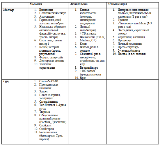 Как вы видите, в каждой градации представлены десятки различных фишек. Мастер упаковываться будет не так, как упаковывается специалист. Профессионал будет проявлять совершенно другие активности, чем проявляет специалист или мастер. Поэтому вам надо понимать, на каком этапе вы находитесь, и что вам нужно конкретно делать. Вот это собственно и вся система.