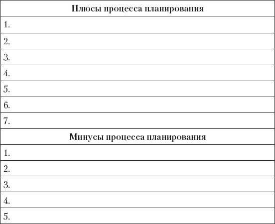 Задача – найти все плюсы и минусы в подходе к процессу планирования, описанному в кейсе. Запишите обнаруженные плюсы и минусы в таблицу в виде коротких тезисов. Например, плюс: «Сотрудники могут торговаться с руководством». Потом вы можете сравнить ваше мнение с моим.