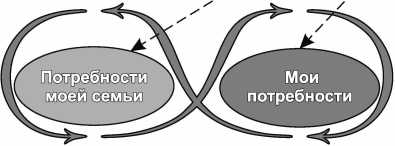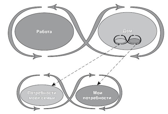 Простым примером является пара «работа и дом» (рис. 2). Внутрь работы заключены «мои потребности и потребности моей компании», внутрь дома – «мои потребности и потребности моей семьи». Если мы продолжим свои изыскания, то в работе обнаружится еще один парадокс: «вклад за счет инициативы» и «вклад за счет подчинения».