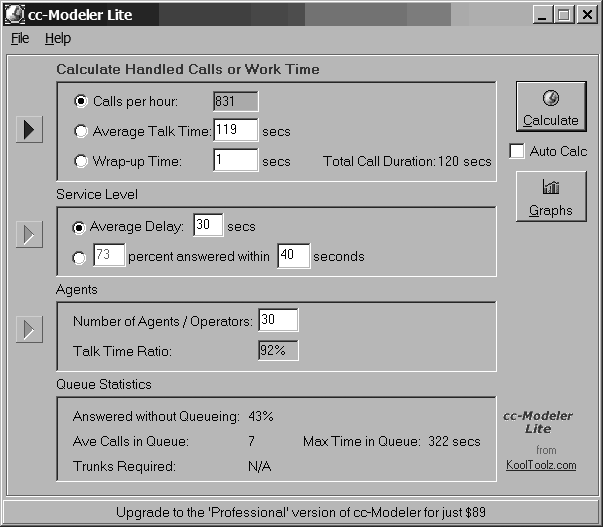 Для расчета первоначального штата операторов этот сайт предлагает очень удобный и наглядный бесплатный калькулятор cc-Modeler Lite.