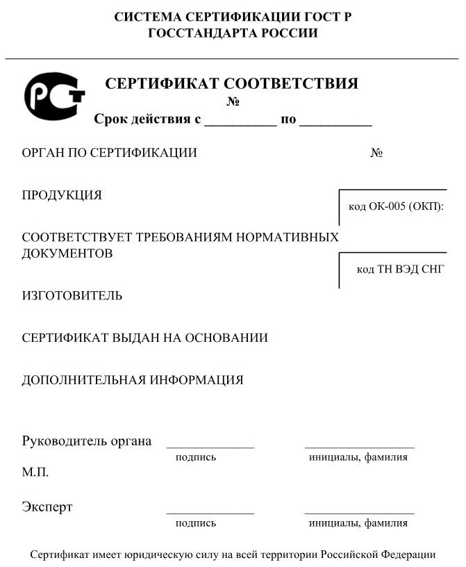 Рис. 1. Форма сертификата соответствия при обязательной сертификации продукции