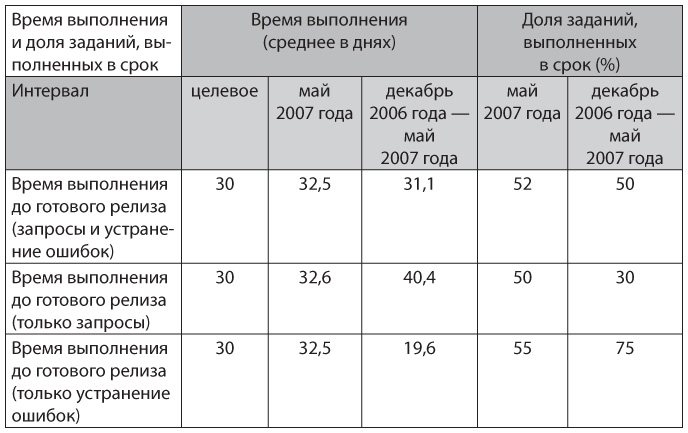 Рис. 12.4. Пример отчета, демонстрирующего среднее время выполнения и долю заданий, выполненных в срок