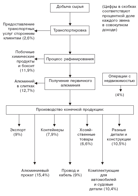 Рис. 11.4. Продажи побочных и конечных продуктов, производимых компанией Alcoa в 1969 г. (Rumelt, 1974 : 21)