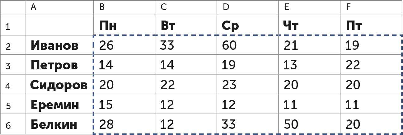Попробуем на примере. У нас есть несколько фасовщиков, которые комплектуют заказы в интернет-магазине. Каждый день они отчитываются, кто сколько расфасовал. У нас данные за 5 дней: