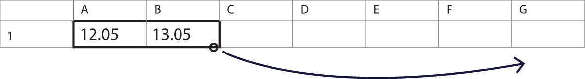Для Экселя этот жест значит «продолжи мою мысль». Эксель посмотрит на вашу мысль: «Ага, тут две даты с разницей в один день. Наверное, нужно продолжить этот порядок дат». И дальше Эксель сам заполнит даты: