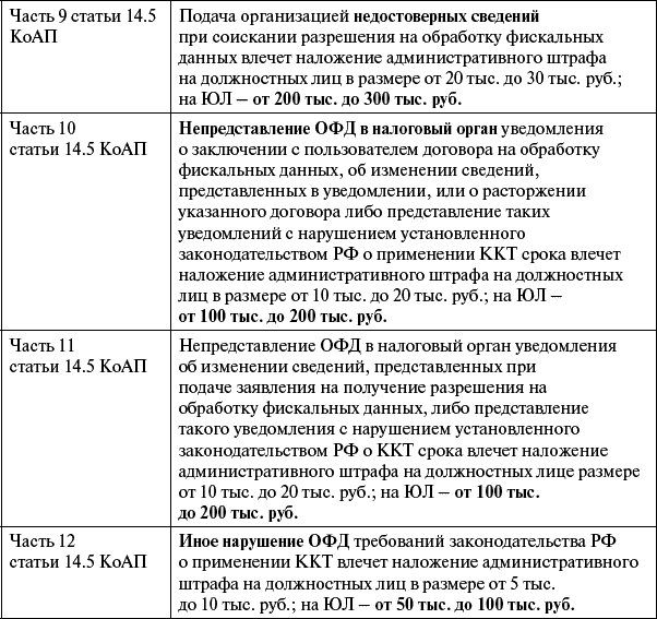 Для ОФД в Законе также установлены достаточно жесткие штрафные санкции. Если они нарушат свои обязанности, то в соответствии с изменениями в законе на ОФД налагаются следующие штрафы: