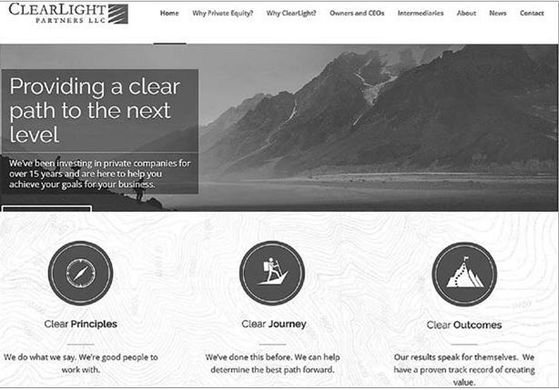 Clear LightPartners LLC – это частная инвестиционная компания, расположенная в округе Ориндж, Южная Калифорния. Несколько лет назад компания обратилась к SalesBrain с просьбой помочь объяснить их конкурентные преимущества частным предпринимателям, которые ищут партнеров. Проведя тщательный анализ уникальных ценностей компании, творческая группа разбила основные доводы на три категории: