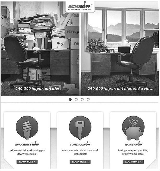 При помощи программного обеспечения и услуг, которые доставляют любой документ в любое место и любое время, Digitech Systems предоставляют все преимущества управления корпоративными информационными ресурсам малым, средним и крупным предприятиям. Г. К. Бэйн, президент Digitech Systems, заявил: «Доводы полностью изменили наш подход к продажам. Они значительно упрощают процесс, особенно когда имеешь дело с сетью посредников, которым больше не приходится искать три уникальных довода в пользу сотрудничества с Digitech Systems» (рис. 8.14).