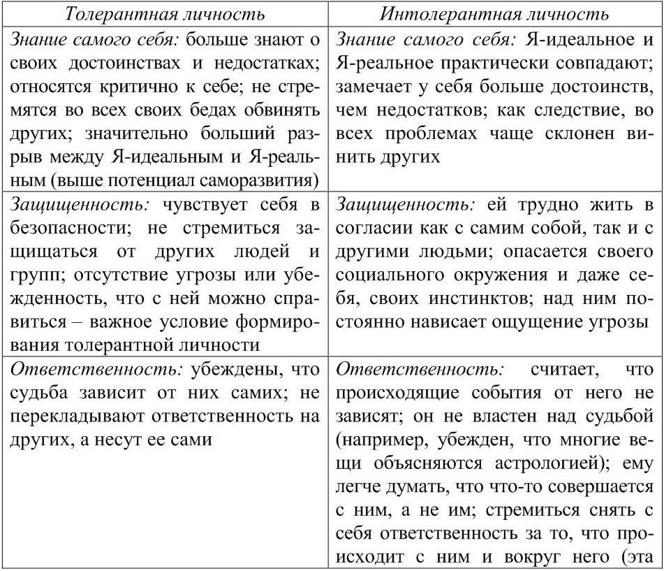 Различия между толерантной и интолерантной личностью