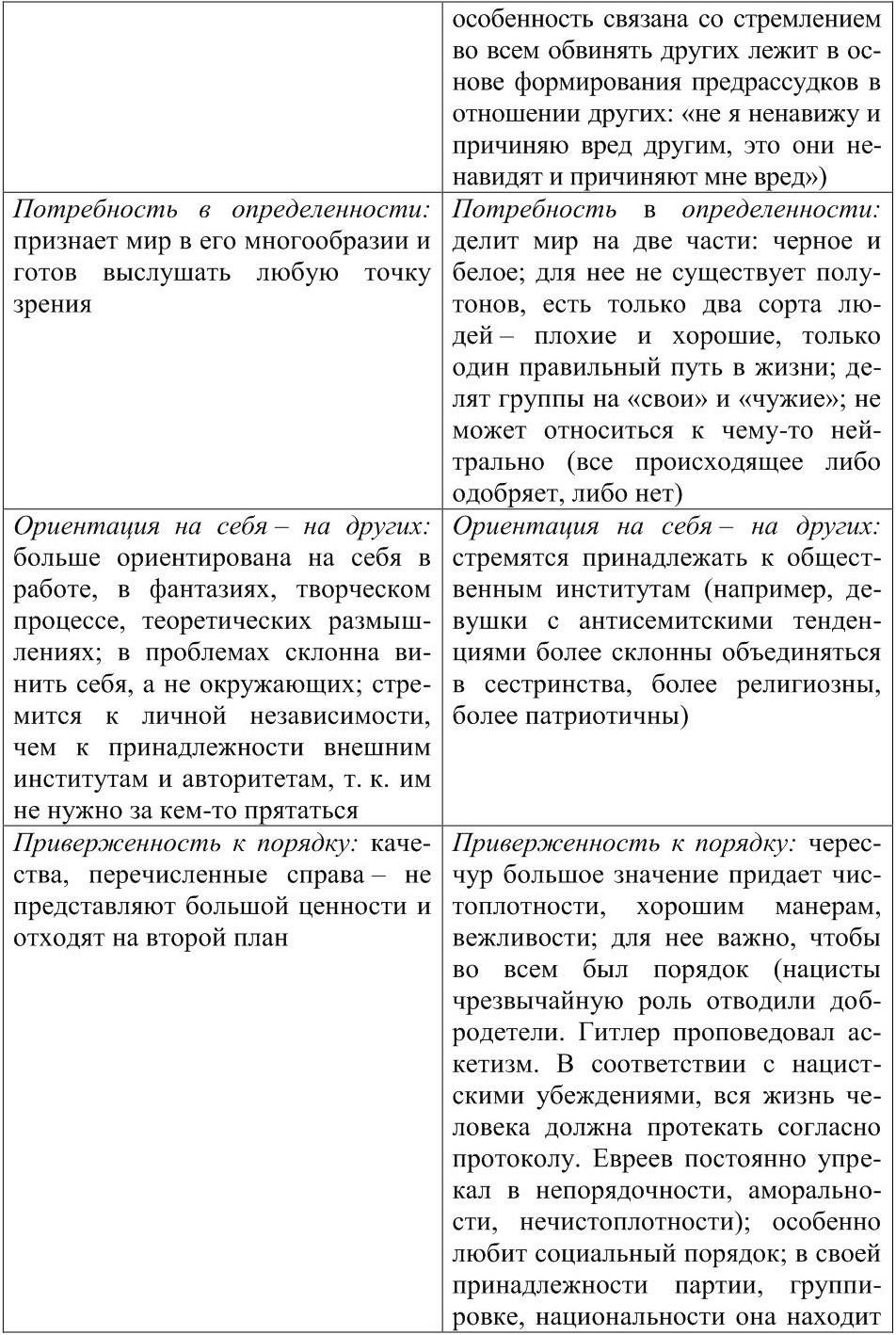 Можно выделить 2 пути развития личности: 1) толерантный, 2) интолерантный, где 1) – путь человека свободного, хорошо знающего других, у которого хорошее отношение к себе сосуществует с положительным отношением к окружающим и доброжелательным отношением к миру, а 2) – представление о собственной исключительности, стремление переносить ответственность на окружение, ощущение нависшей угрозы, потребность в порядке, желание сильной власти.