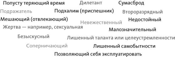 Как и в предыдущем разделе, предлагаю составить список ложных представлений, которые в вас укоренились, и сделать все, чтобы от них избавиться. Избегайте общения с людьми соперничающими, злобными или иным способами подрывающими уверенность, невзирая на их талант, известность или связи (раздел 7.3).