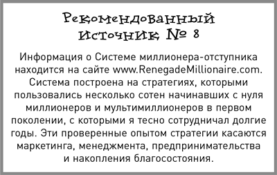 Там его прозвали Нейтронным Джеком, за то что взорвал весь средний уровень управленческой пирамиды, который, как ему казалось, тормозил работу компании. Джек спрямил и упростил пути обмена информацией, до опасной степени делегировал полномочия и каждый год неуклонно сокращал штат на 10–20 %, постоянно выбраковывая медлительных. Возможно, важнейшей – и менее всего воспринятой – была его тактика начинать много разных дел одновременно, а не последовательно. На этом ключевом принципе зиждется моя Система миллионера-отступника (Renegade Millionaire System). Полная противоположность всему, что нам с детства внушали: мы ведь то и дело слышали: «Поспешишь – людей насмешишь» – и учились «делать все по порядку», «не хвататься за все дела разом». Но в реальности достижения приходят другим путем, и предпринимательские состояния складываются иначе.