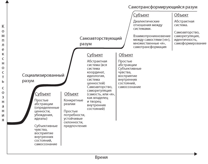 Познание мира становится более комплексным, когда человек способен взглянуть на то, что раньше являлось чем-то, через что мы смотрели на мир[10]. Иными словами, когда мы создаем новую систему, которая интегрирует в себя существующую и расширяется на ее основе. Если мы хотим повысить комплексность своего сознания, нам нужно перевести некоторые аспекты осмысления мира из зоны субъекта в зону объекта. Тогда наш взгляд изменится, и свойственный текущему уровню развития способ познания или осмысления станет чем-то вроде «инструмента», который у нас есть (мы его можем использовать и управлять им), перестав быть тем, что владеет нами (а следовательно, управляет и использует).