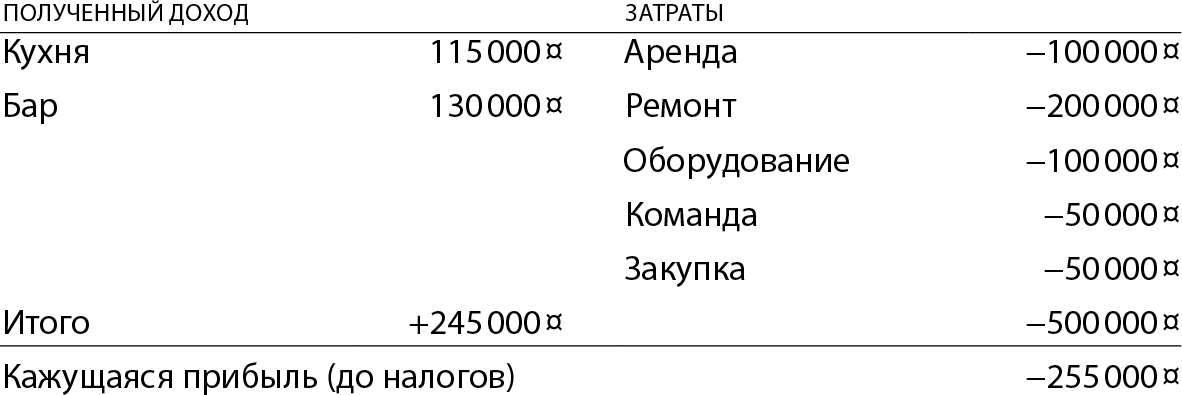 В этот же месяц бургерная Коли получила в кассу 245 тысяч рублей. Кажется, что бургерная работает в минус: было 500, стало 245, как будто мы просели на 255 тысяч. Но расстраиваться рано, по этим данным ни о чем судить нельзя. Может быть, бургерная работает в плюс, а может быть, и в минус — надо посчитать немного по-другому.
