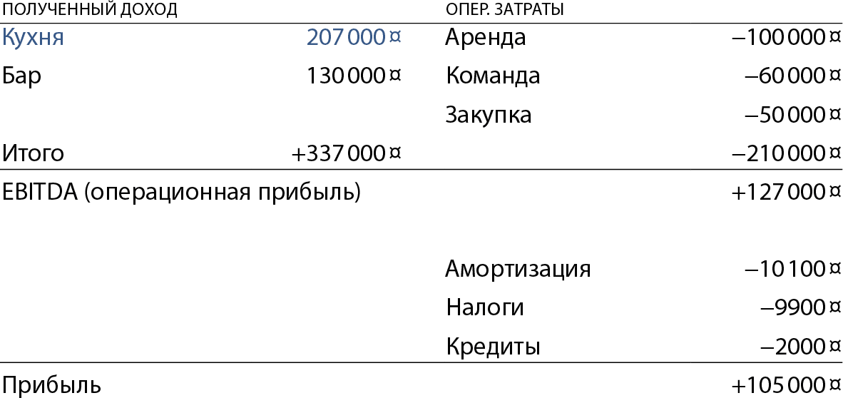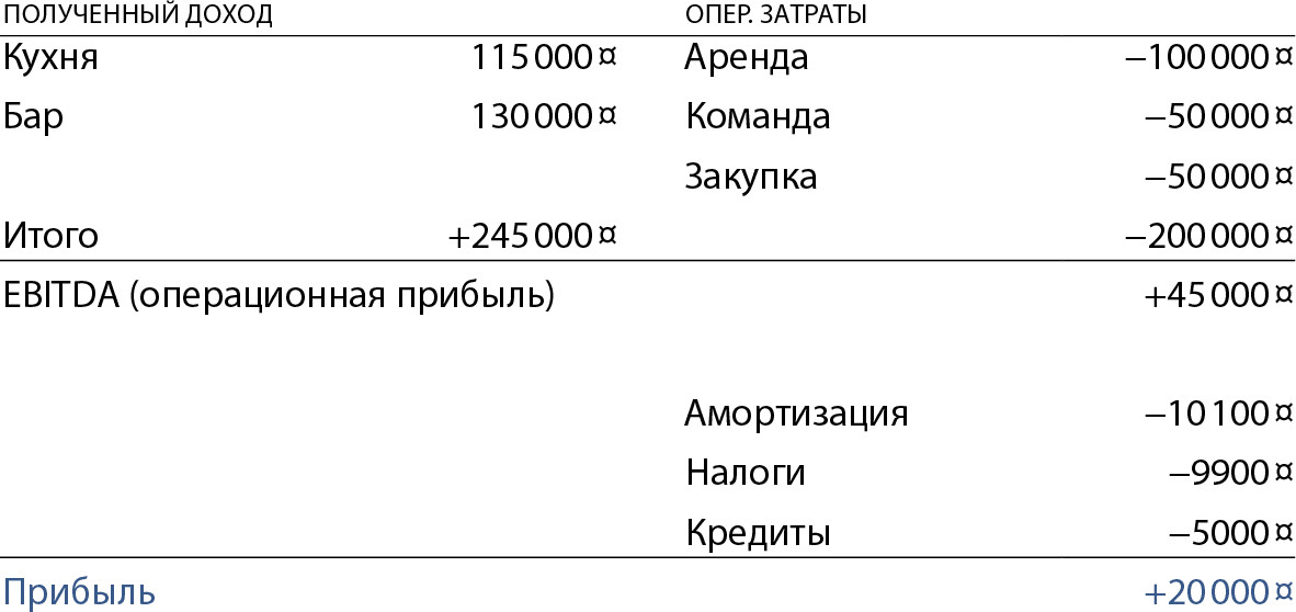 Бургерная: EBITDA, амортизация и чистая прибыль