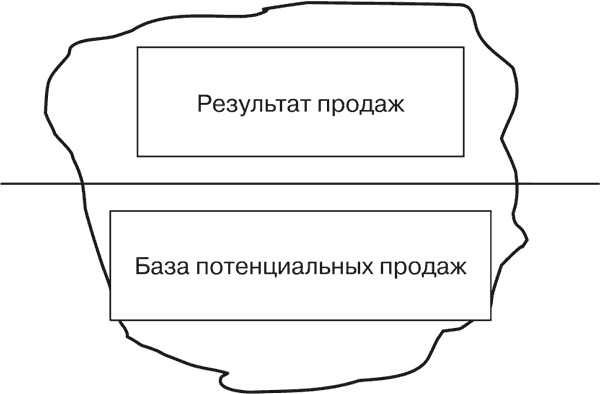 Соотношение существующих и потенциальных клиентов можно представить в виде айсберга. Надводная его часть – нынешние объемы продаж, подводная – база потенциальных клиентов, завтрашних продаж (рис. 2.10). Соотношением между ними (оно зависит от отрасли, региона и т. п.) мы должны научиться управлять.